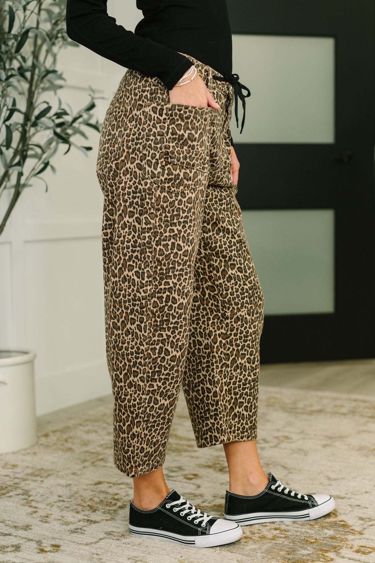 Get ready to strut with the Prowl Power Barrel Ankle Crop Jean in khaki. Featuring a mid-rise and wide leg silhouette, these jeans combine comfort and style effortlessly. With a functional drawstring and patch pockets, they’re as playful as they are practical—perfect for your next adventure!